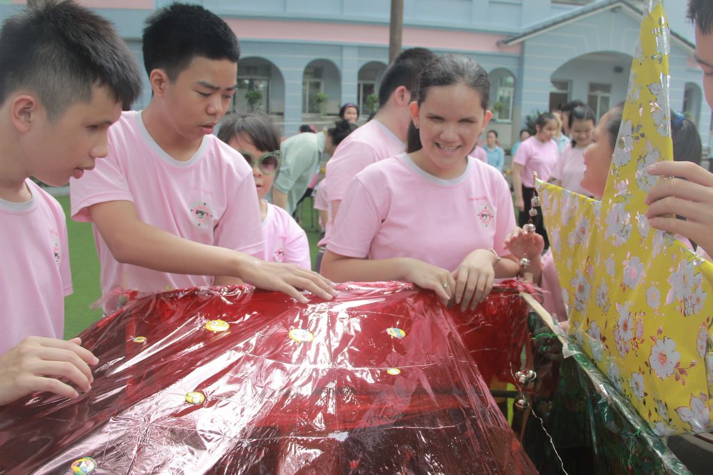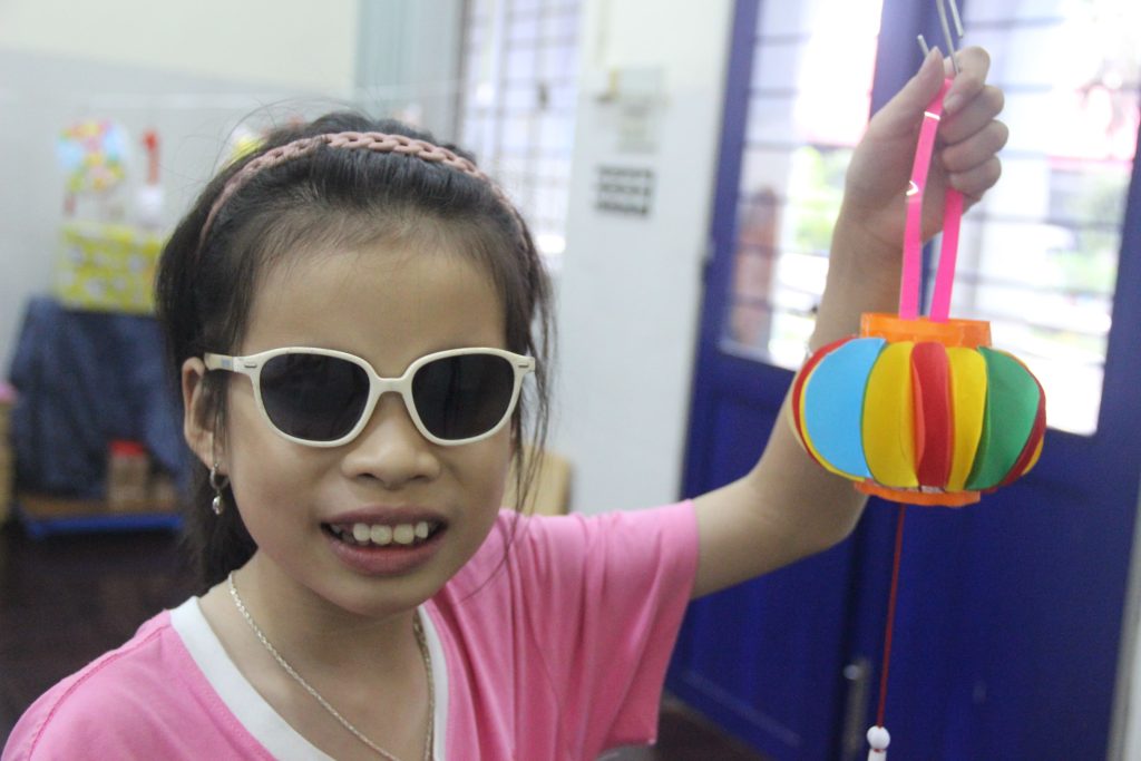 Trong không gian tràn ngập sắc màu, từng chiếc lồng đèn lung linh, rực rỡ được các em tự tay tạo nên, hiện lên thật đẹp đẽ. Dù sống trong bóng tối, nhưng với đôi tay khéo léo, tỉ mỉ, cùng sự hướng dẫn tận tình của quý dì, quý thầy cô, các em đã thổi hồn vào từng sản phẩm. Từ hình dáng ông sao quen thuộc, ngôi nhà ấm áp cho đến những bông hoa xinh tươi, tất cả đều được làm từ nhiều chất liệu khác nhau, mang đậm dấu ấn riêng. Qua cảm nhận bằng xúc giác, bằng tấm lòng, bằng âm thanh, lời nói, các em đã tạo ra những tác phẩm không hề thua kém phần hấp dẫn, thậm chí còn mang một vẻ đẹp đáng trân trọng, một nét đặc sắc rất riêng.